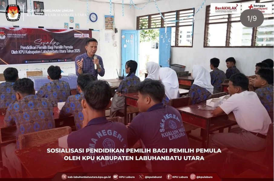 KOMISI PEMILIHAN UMUM KABUPATEN LABUHANBATU UTARA MELAKSANAKAN SOSIALISASI PENDIDIKAN PEMILIH BAGI PEMILIH PEMULA DI SMA NEGERI 1 KUALUH HULU