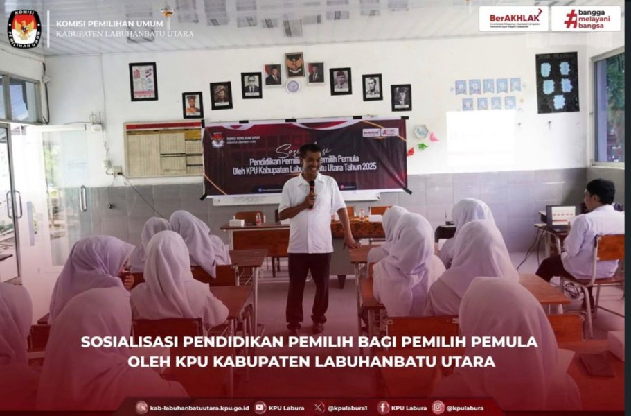 Komisi Pemilihan Umum Kabupaten Labuhanbatu Utara melaksanakan Sosialisasi Pendidikan Pemilih bagi Pemilih Pemula di SMA Negeri 1 Kualuh Selatan.
