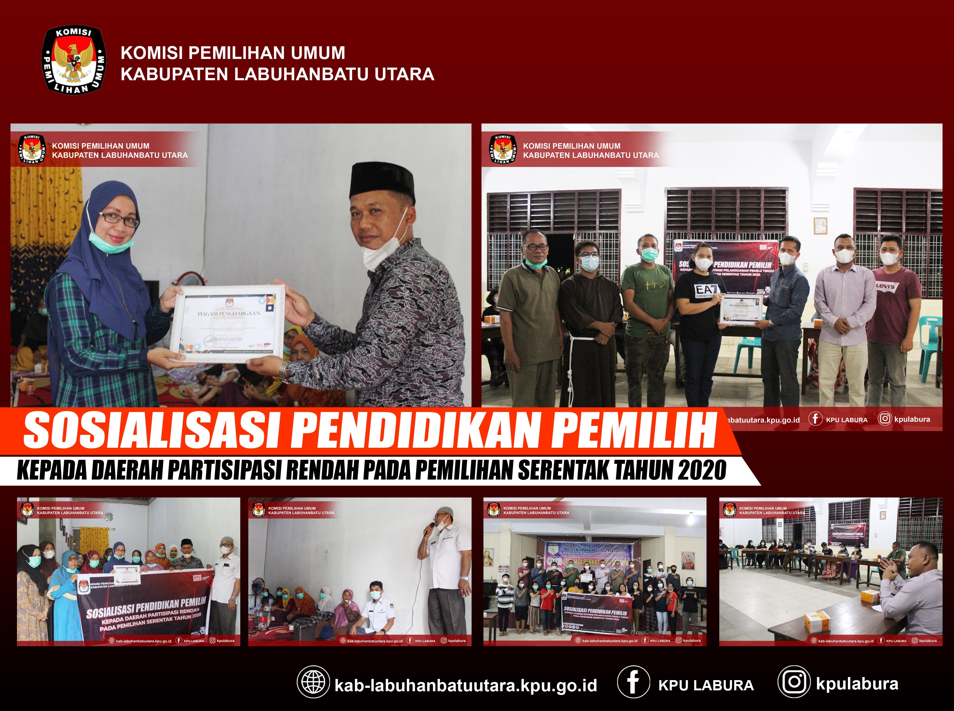 Sosialisasi Pendidikan Pemilih ; Menyongsong Pemilu Serentak Komisi Pemilihan Umum telah melaksanakan Kegiatan Sosialisasi Pendidikan Pemilih di Daerah dengan Kategori Partisipasi Pemilih Rendah (Kelurahan Gunting Saga Aek, Kanopan) dan Kategori Potensi Pelanggaran tinggi (Orang Muda Katolik Paroki St. Pius X Aek Kanopan). Kegiatan tersebut dilaksanakan pada Tanggal 07 dan 23 Oktober 2021 lalu. Bertindak sebagai narasumber adalah Bapak Adi Susanto, Komisioner divisi Teknis dan Bapak James Ambarita, Komisioner Divisi Rendatin dibantu Bapak Habibulah Sitorus, Komisioner Divisi Hukum dan Pengawasan KPU Kabupaten Labuhanbatu Utara. Pentingnya Kegiatan Sosialisasi Pendidikan Pemilih bagi Daerah dengan Partisipasi rendah adalah karena masih sering ditemukan: a. Banyaknya pemilih yang berdomisili Jauh dari TPS bahkan diluar daerah TPS namun masih memiliki KTP yang beralamatkan di tempat TPS didirikan. b. Kurangnya kesadaran diri pemilih untuk memberikan hak pilihnya c. Kurangnya kepercayaan pemilih terhadap calon yang akan di pilih d. Masih adanya pemilih yang sudah tidak memenuhi syarat di dalam daftar pemilih Demikian Juga dengan Kategori Daerah Potensi Pelanggaran Tinggi, permasalahan yang sering ditemukan adalah: a. Kurangnya pemahaman terhadap regulasi b. Kurangnya SDM sehingga masih mudah untuk dipengaruhi oleh pihak-pihak tertentu c. Rasa simpati yang terlalu berlebihan dalam memberikan dukungan d. Money Politic yang terus bergulir di dalam setiap pemilihan untuk mendulang suara e. Tidak netralnya ASN dalam memberikan dukungan Sehingga perlu diberikan pemahaman kepada para peserta sosialisasi untuk menghindari pelanggaran-pelanggaran yang tidak diinginkan pada Pemilu Serentak mendatang Kegiatan ini adalah lanjutan dari kegiatan sebelumnya, dengan Kategori daerah Pemilihan yang berbeda seperti: Daerah Partisipasi Pemilih Tinggi, Daerah Rawan Konflik dan Daerah Rawan Bencana. Kegiatan Sosialisasi Pendidikan Pendidikan Pemilu diharapkan dapat Membantu penyelenggara pemilu melaksanakan pemilu dengan baik ditunjukkan dengan meningkatkan partisipasi pemilih, Kesadaran tentang pentingnya penggunaan suara dalam pemilu yang dilakukan secara intensif dan luas sehingga partisipasi pemilih dapat meningkat.