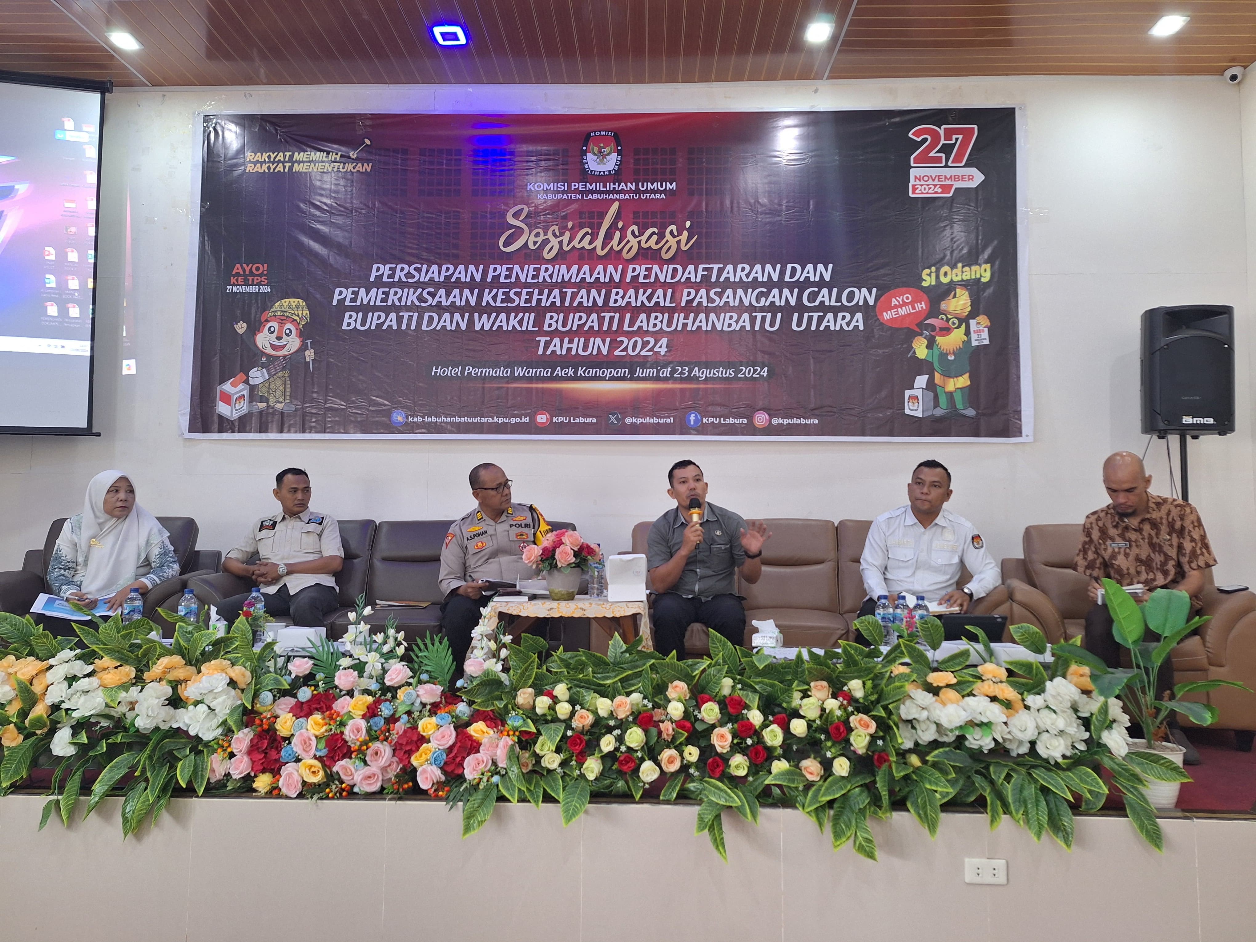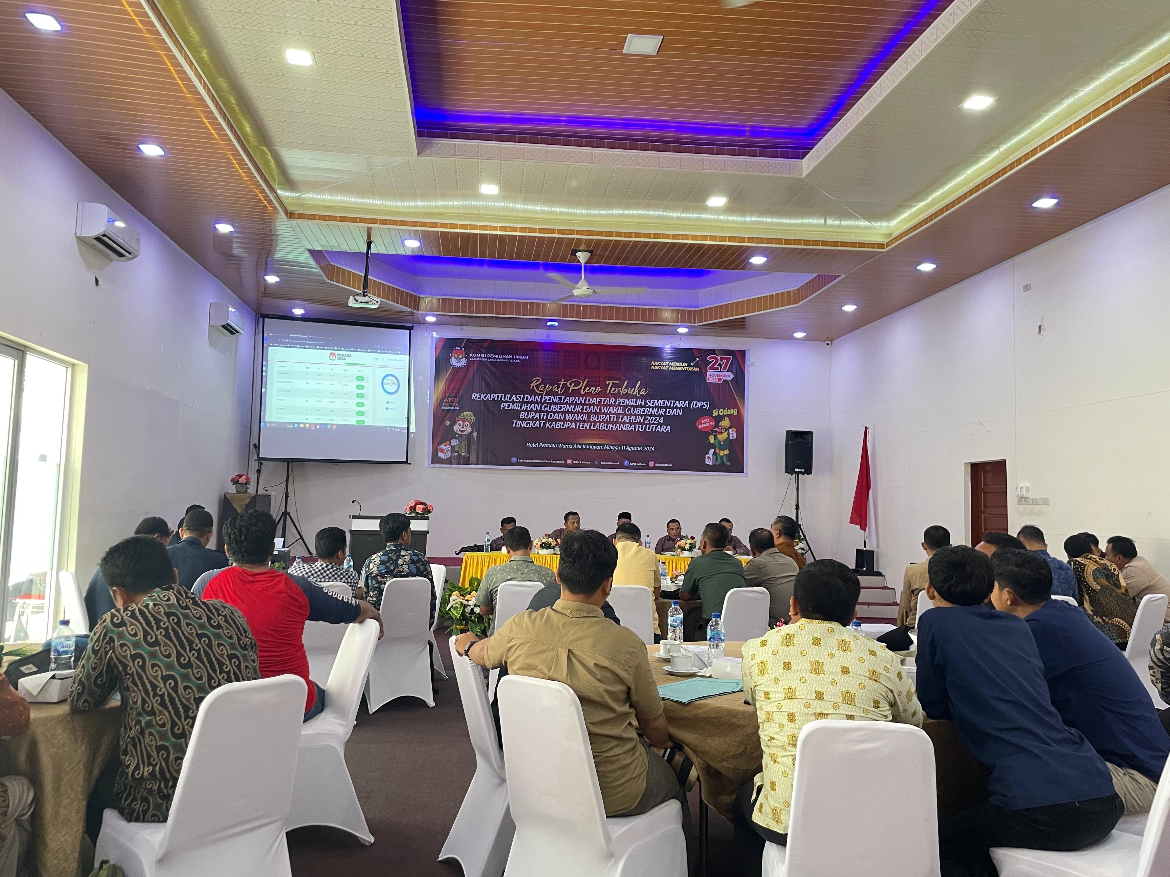 Labuhanbatu Utara - Komisi Pemilihan Umum Kabupaten Labuhanbatu Utara melaksanakan Bimbingan Teknis Sekretariat PPK dan Sekretariat PPS se-Kabupaten Labuhanbatu Utara tentang Laporan Pertanggungjawaban Dana Hibah pada Pemilihan 2024 di Aula Hotel Shangrila pada tanggal 30 - 31 Juli Tahun 2024 di Aula Hotel Shangrila.
